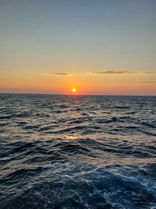Gentle ocean waves during sunset.